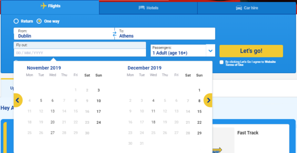 Flights Hotels Car hire Return One way From: To: Continue What is Flight Credit? Every time you book your stay with Ryanair Room, you’ll earn 5% Flight Credit to use towards your next Ryanair flight. Book now Autumn car hire Book car hire for your autumn trip today and you could be driving away from...