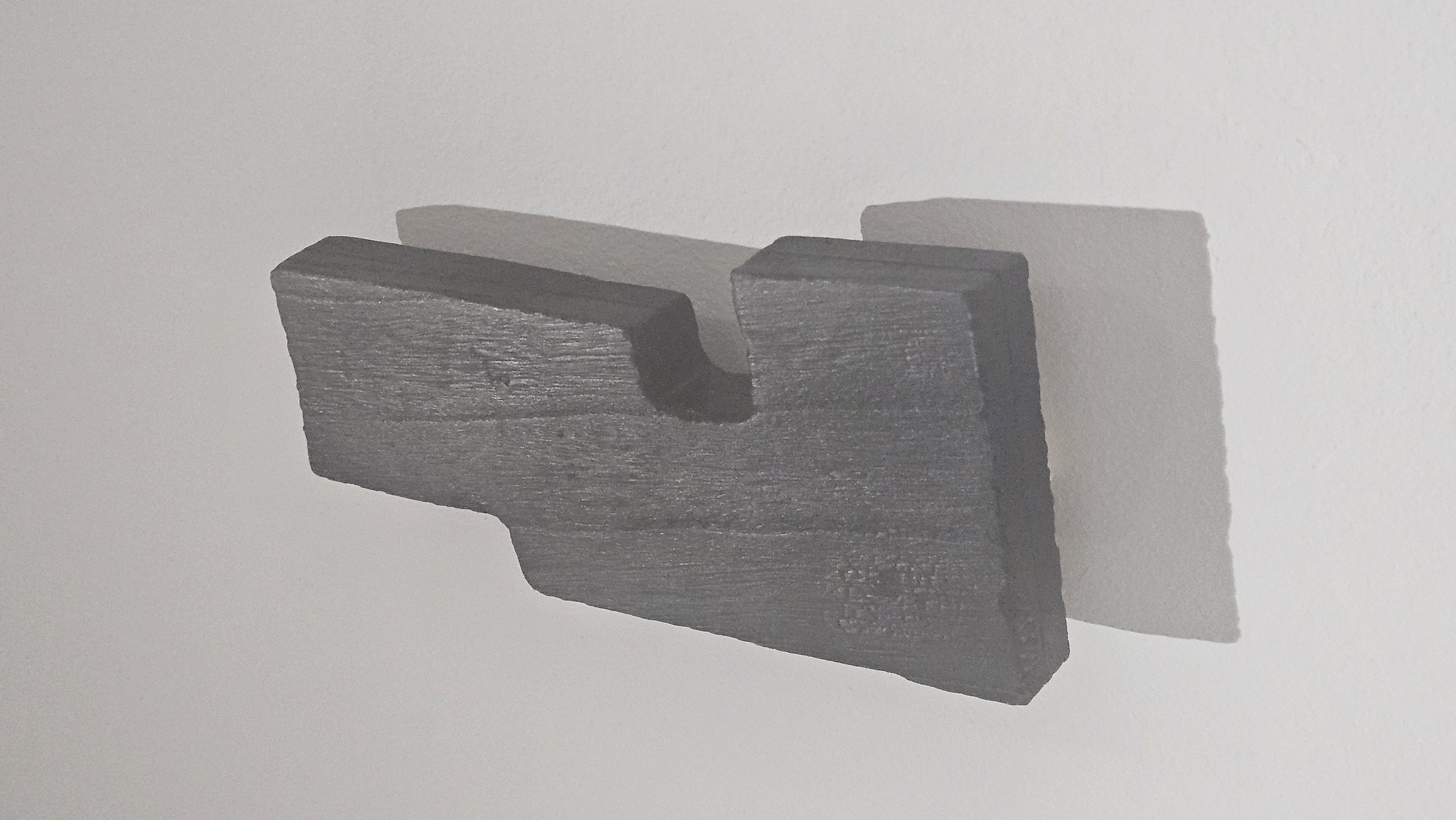 검게 태운 오동나무 목판을 빔프로젝터에 비춰 그 그림자를 태운 오동나무로 따라 그린 작품.